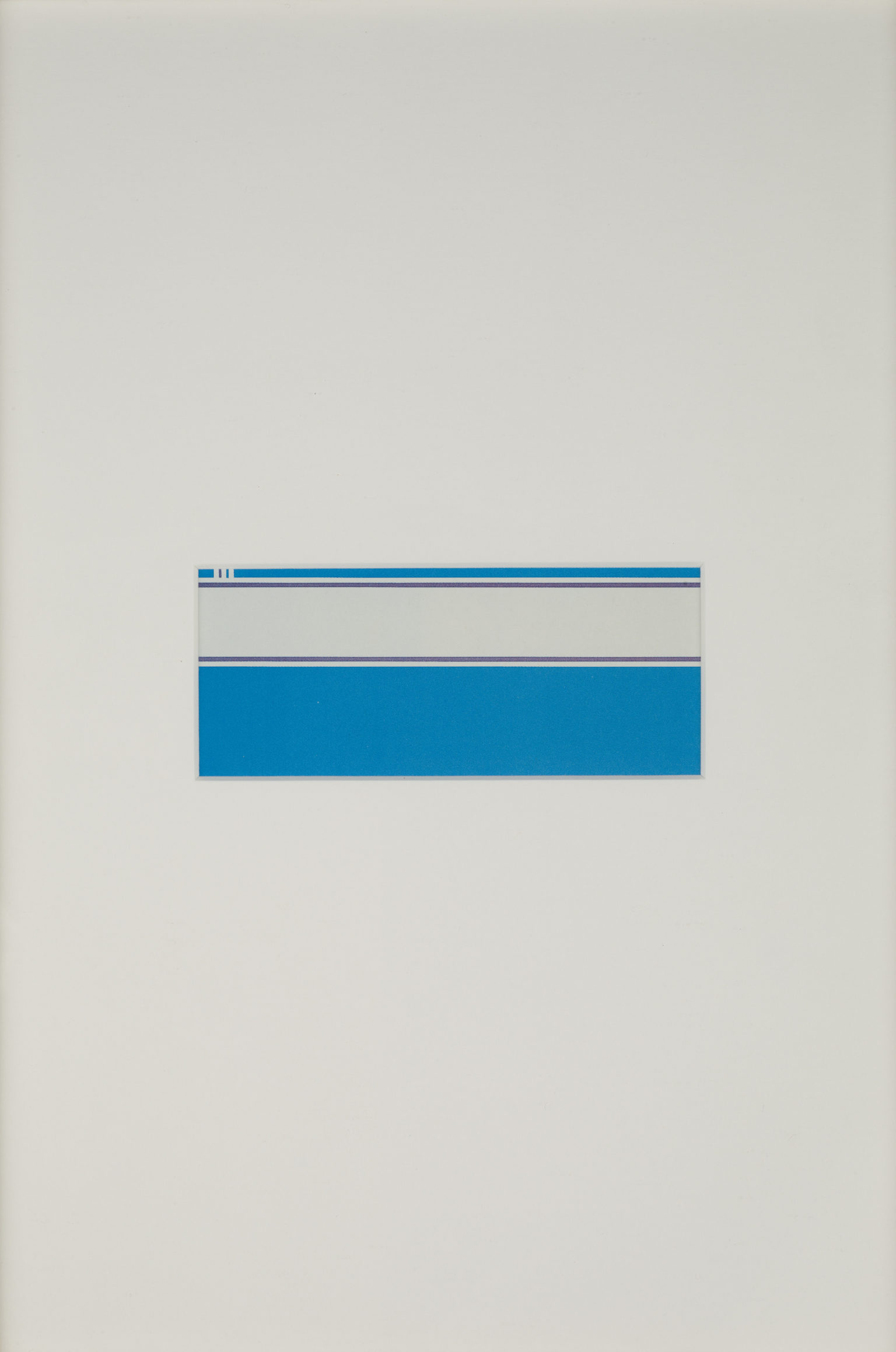 The process drew on a phenomenon Baudevin spotted in hairdressing salons: the photos on display in the windows change colour over time. The cyan ink is the most resistant, hence the predominance of blue. For Baudevin, the sun-exposed paper counts as a drawing in its own right: it is a relatively small work coloured by a process he compares to watercolour. He is still using the same technique today, since it gives him the impression of working at sunrise. When he gets to his studio in the morning, the catalogue pages are already changing.